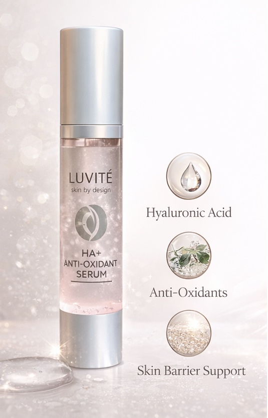 The Luvité HA+ Anti-Oxidant Serum is a high-performance hydration treatment formulated to restore moisture levels, improve skin texture and support long-term skin health.
